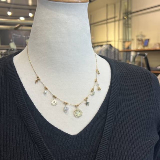 太陽×パール ゴールドチェーンネックレス インポートアクセサリー【フランス インポート Ella Ella】F2508061