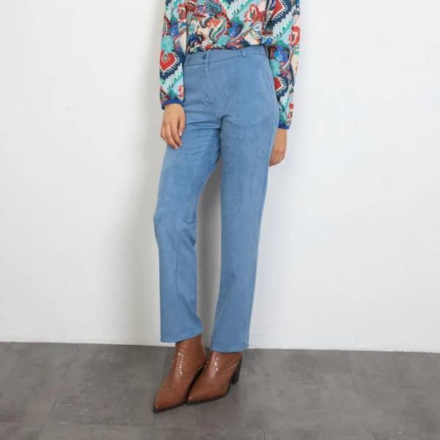ブルー エコスエード ストレートパンツ レディースインポートパンツ ボトムス ビジネス オフィスカジュアル【スペインインポート TINTA(ティンタ)】 F2512007