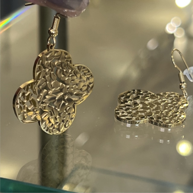 透かしリーフパネルピアス ゴールド フックピアス【フランス インポート Ella Ella】F2505018