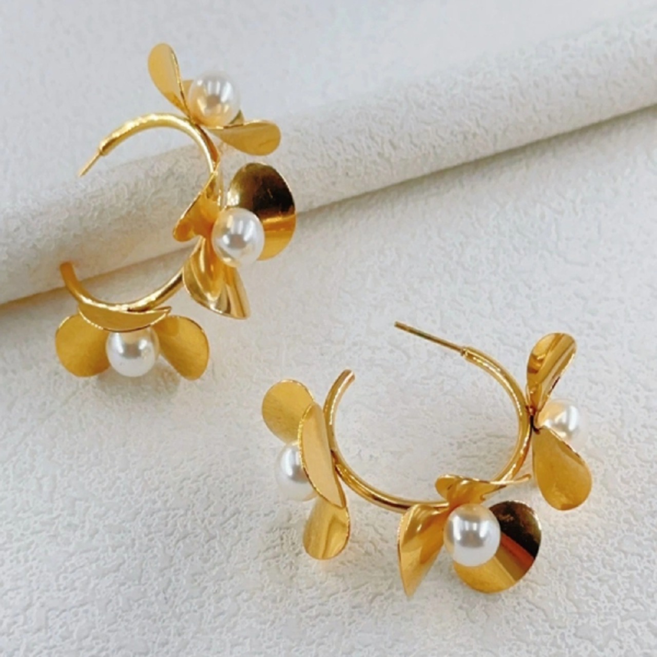 立体フラワー リングピアス ゴールド【フランス インポート Ella Ella】F2505012