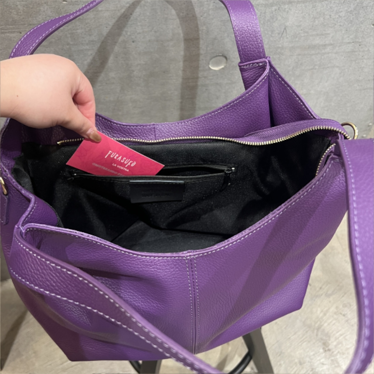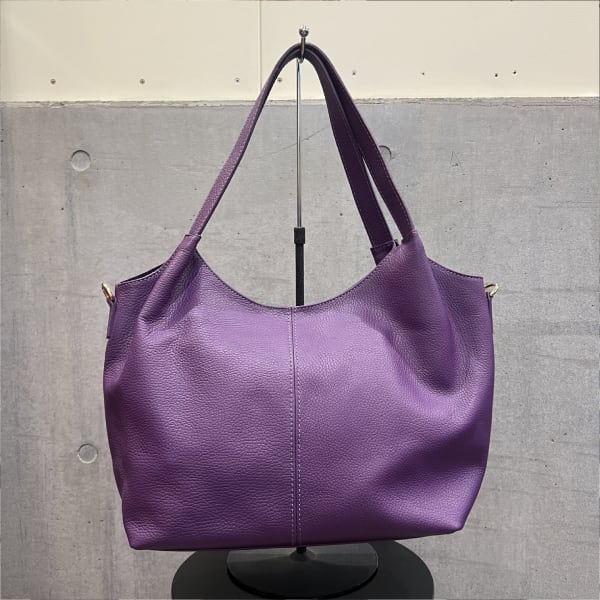牛革 グレインレザー ショルダーストラップ付バッグ 2Way仕様 パープル【イタリアインポート Z&Z】 F2507033
