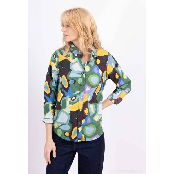 アートプリント 柄シャツ 長袖シャツ レディースシャツ【フランスインポート Emi Jo】 F2508019