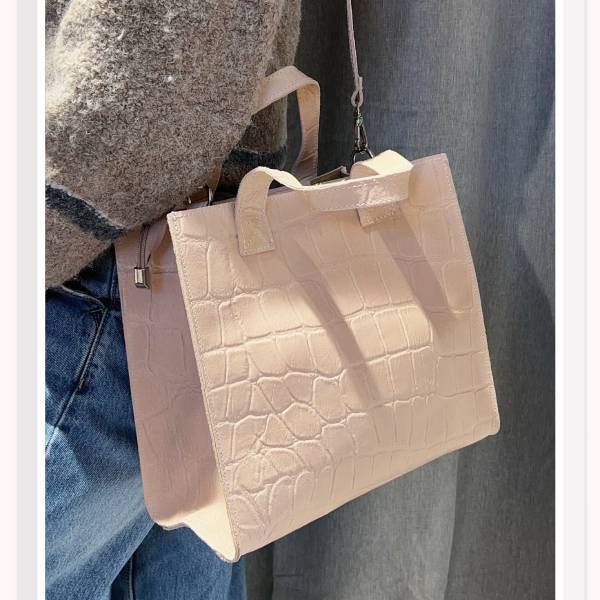 牛革 ワニ型押しスウェード ショルダーバッグ アイボリー【イタリアインポート Z&Z】 F2507025