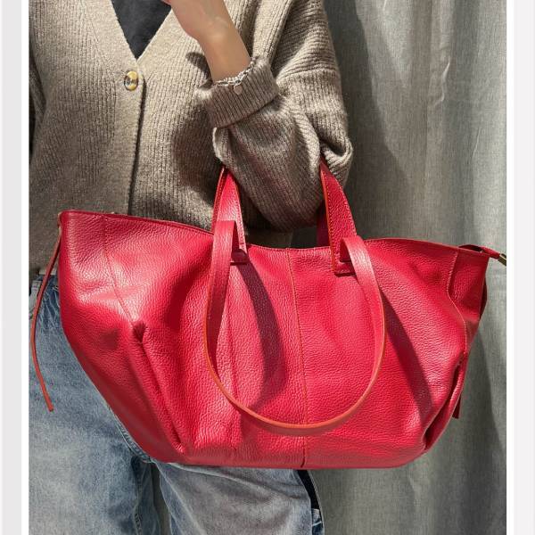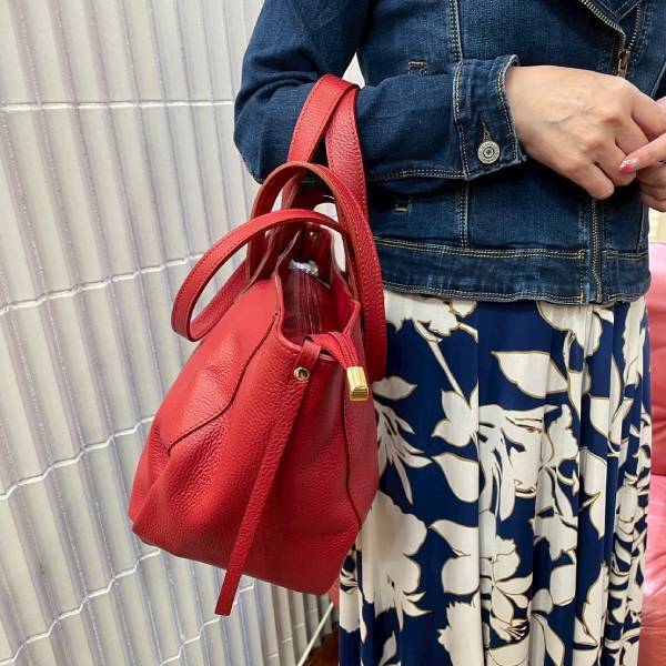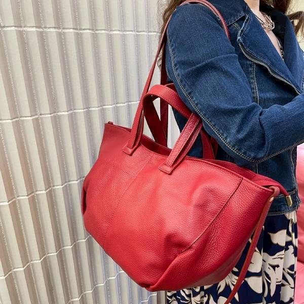 牛革 グレインレザー ショルダーバッグ×トートバッグ 2Way仕様 レッド【イタリアインポート Z&Z】 F2507024