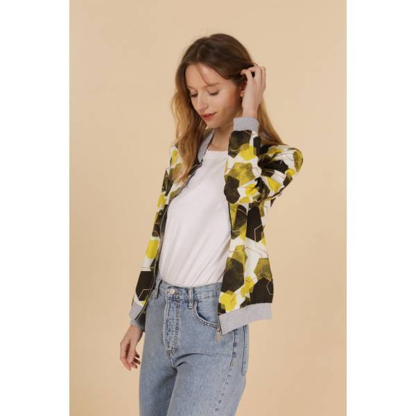 ヘキサゴンプリント ボンバージャケット 薄手ブルゾン レディースブルゾン イエロー【フランスインポート”Jolifly”】 F2508029