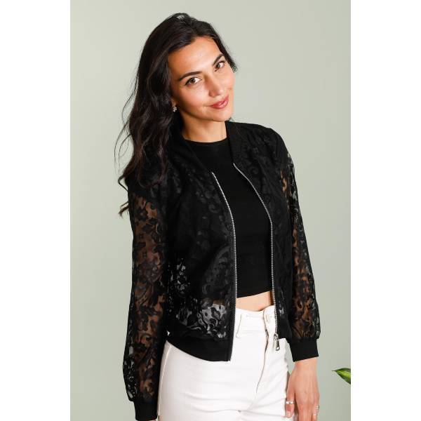レース ジップアップブルゾン 薄手ブルゾン レディースブルゾン ブラック【フランスインポート”Jolifly”】 F2508027