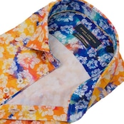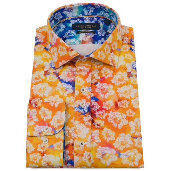 オレンジタイダイ フラワープリント インポート柄シャツ プリントシャツ メンズプリントシャツ ストレッチコットン【イギリスインポート GUIDE LONDON(ガイドロンドン)】 LS76125