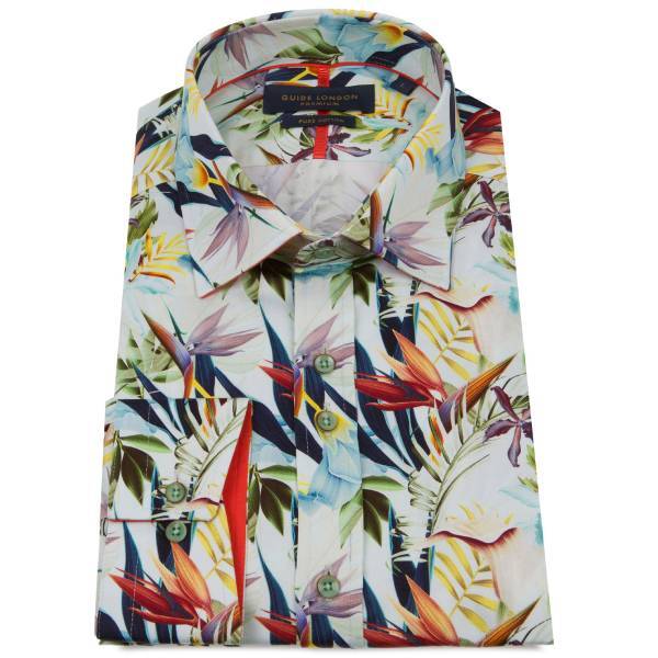 リーフフラワープリント インポート柄シャツ プリントシャツ メンズプリントシャツ【イギリスインポート GUIDE LONDON(ガイドロンドン)】 LS76126