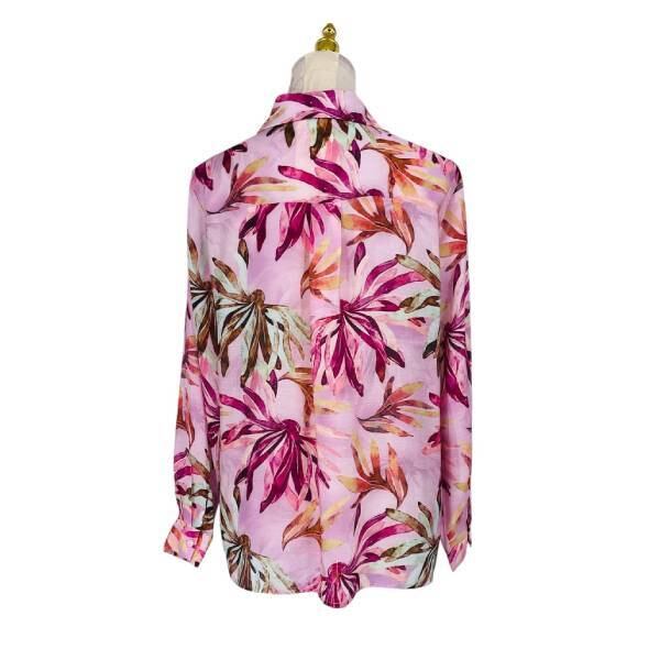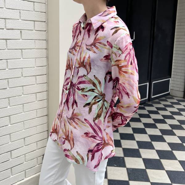 リーフプリント シアー素材 ピンク 柄シャツ 長袖シャツ レディースシャツ インポートシャツ【フランス インポート SWEET MISS(スウィートミス)】 F2509003
