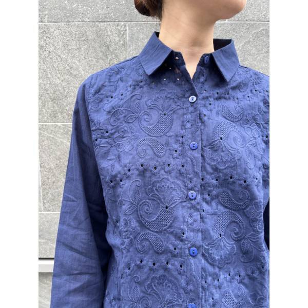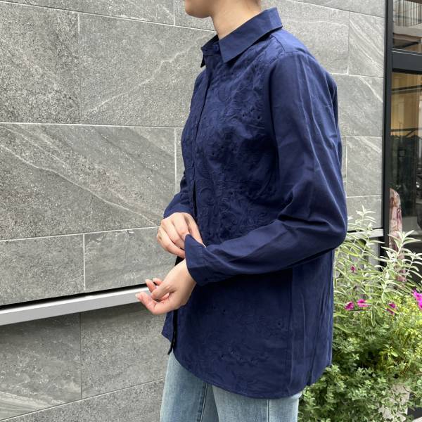 パンチング刺繍 ネイビー 長袖シャツ ブラウス レディースシャツ【フランス インポート SWEET MISS(スウィートミス)】 F2509001