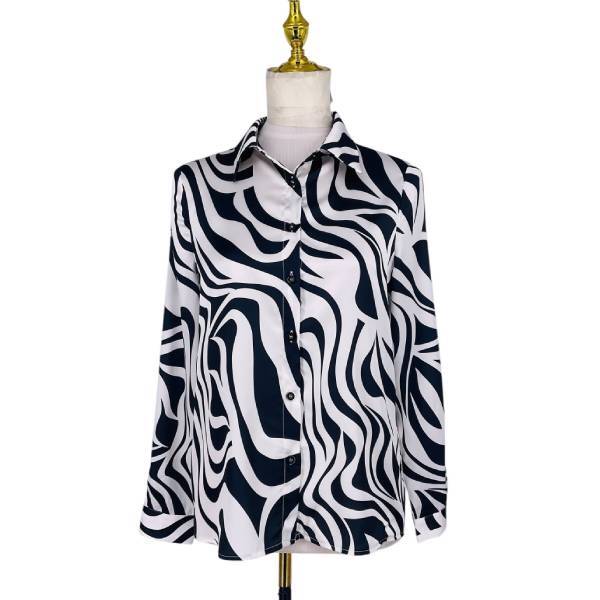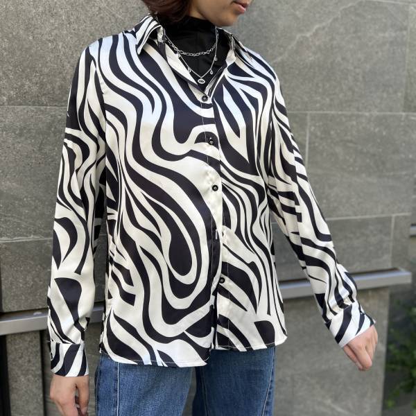 ゼブラプリント サテン ホワイトブラック 長袖シャツ 柄シャツ レディースシャツ インポートシャツ【フランス インポート SWEET MISS(スウィートミス)】 F2509004