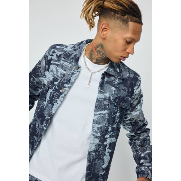 迷彩風プリント×刺繍 デニムジャケット Gジャン メンズアウター セットアップ対応【フランスインポートFrilivin(フリリヴィン)】 F2508035