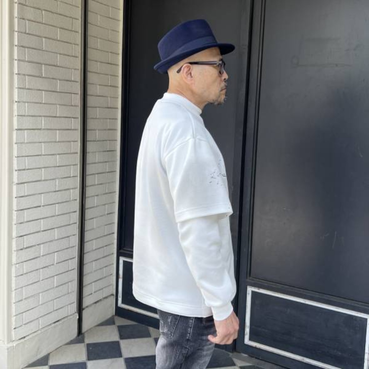 長袖に半袖を重ねたようなレイヤードデザインがポイント、個性的なスタイルが魅力です。