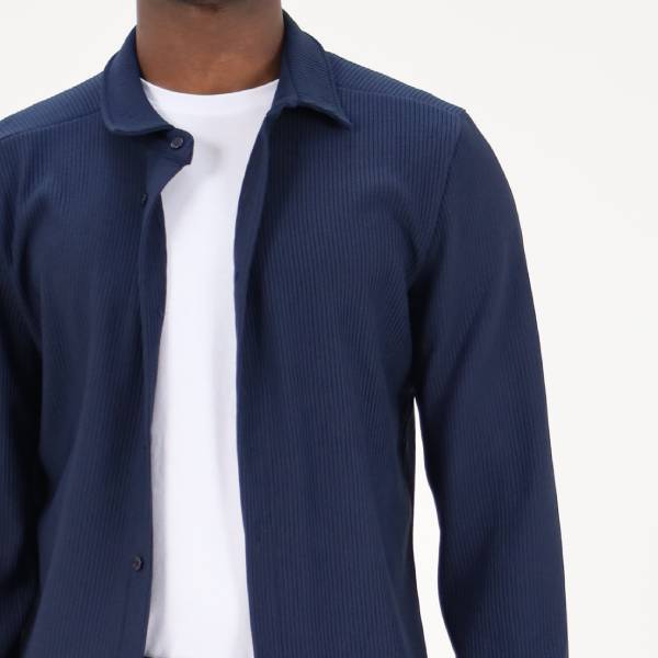 ネイビー ピケ素材 ストレッチシャツ カラーシャツ メンズシャツ【イタリアインポート UNIPLAY】 F2509013