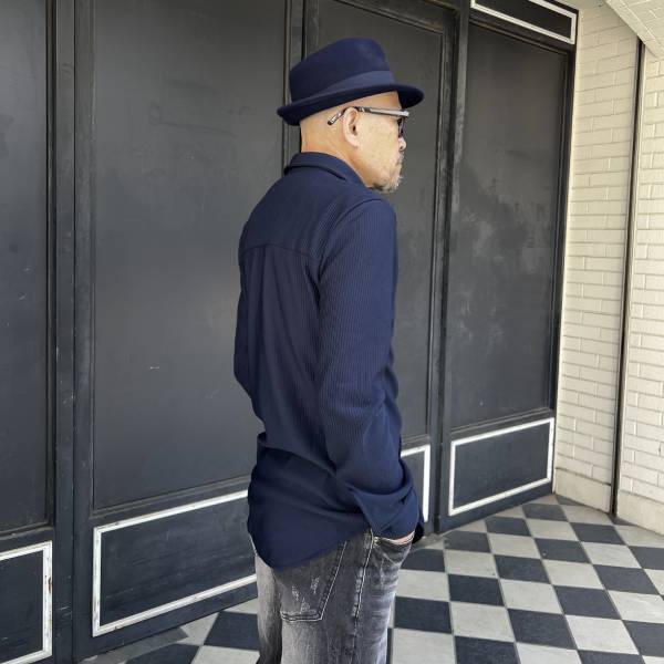 イタリアのメンズインポートブランド”UNIPLAY”より、紺のストレッチ長袖シャツをインポート。