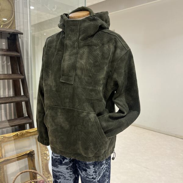 迷彩柄のようなパイル生地を使用し、存在感ある一着に仕上がっています。