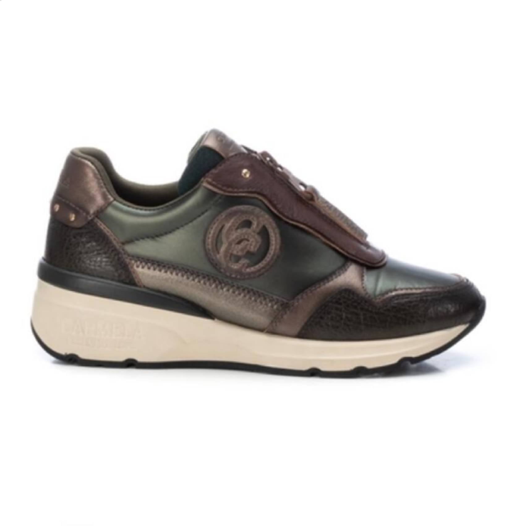 カーキ レザー×PU コンビレザースニーカー センタージップ 牛革【スペインインポート CARMELA(カルメラ)】 F2509021