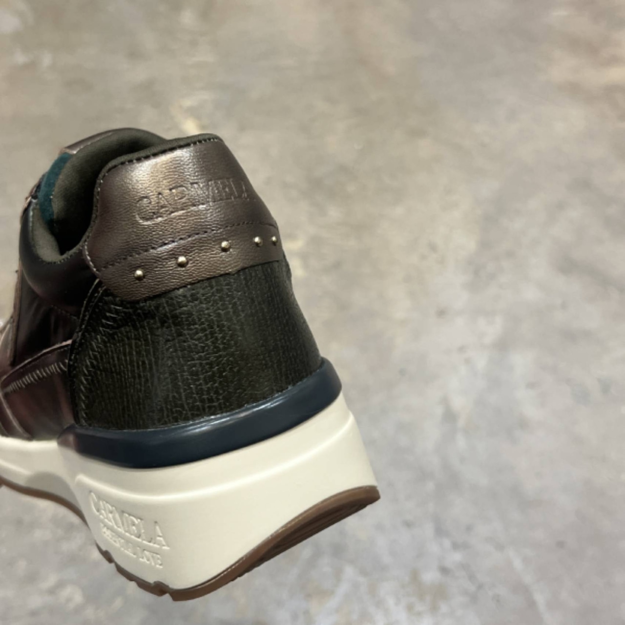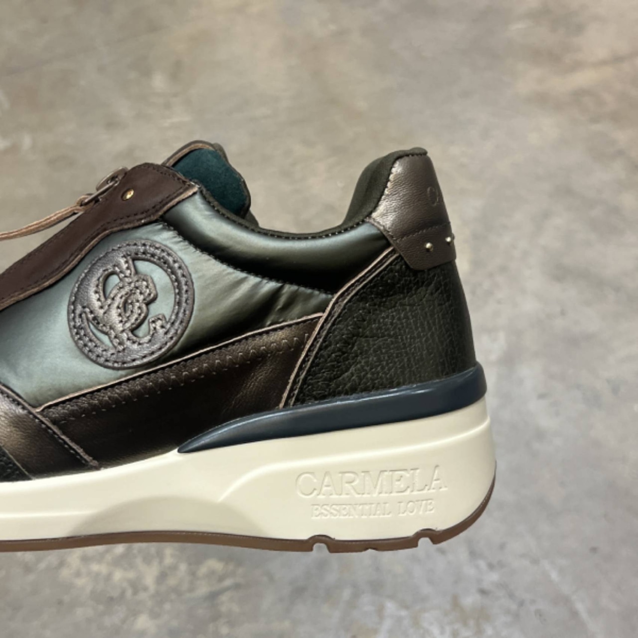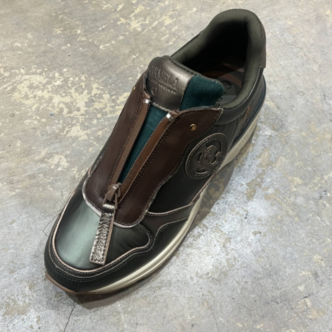 カーキ コンビレザースニーカー センタージップ 牛革【スペインインポート CARMELA(カルメラ)】 F2509021