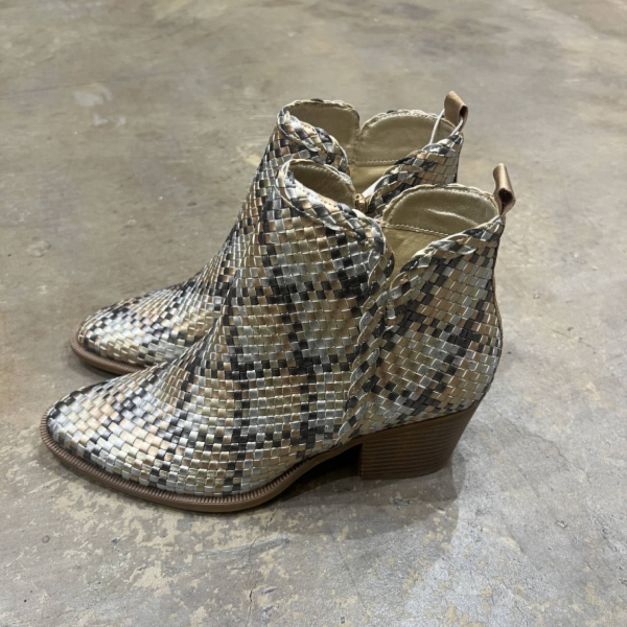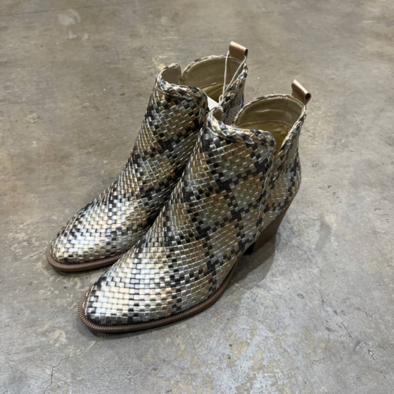 メッシュ編みに仕上げたデザインが個性的なアンクルブーツです。
