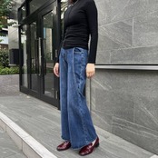 ワイドの広がりが脚を長く美しく見せ、どんなトップスと合わせてもトレンド感をまとったスタイルが完成します。