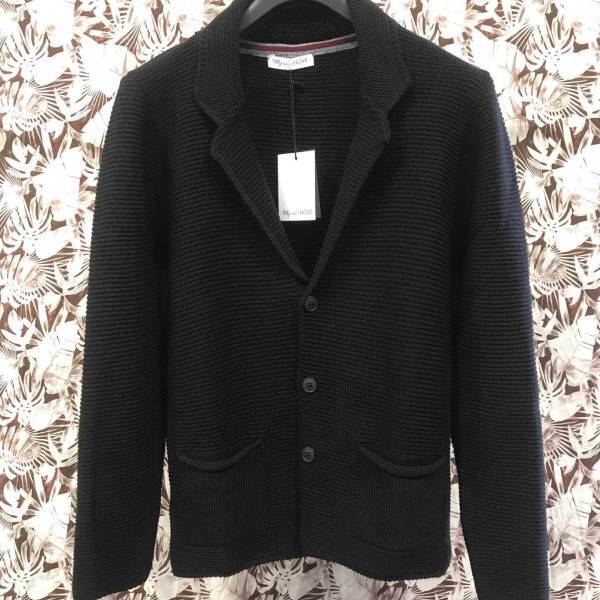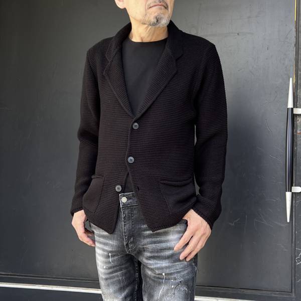 ブラック あぜ編みニット テーラードジャケット 裏地無し メンズジャケット【イタリアインポートJINCO】 F2510007