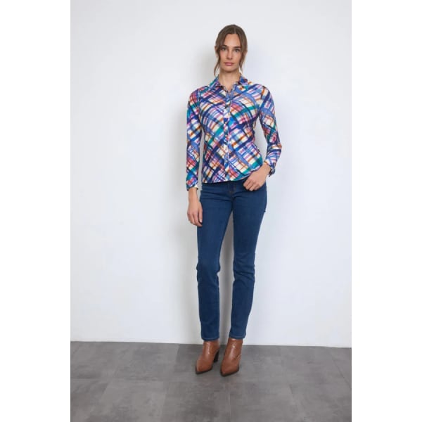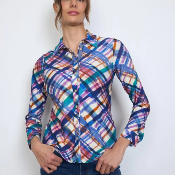 マルチカラープリント ストレッチ長袖シャツ 柄シャツ ブラウス レディースインポートシャツ【スペインインポート TINTA(ティンタ)】 F2510009