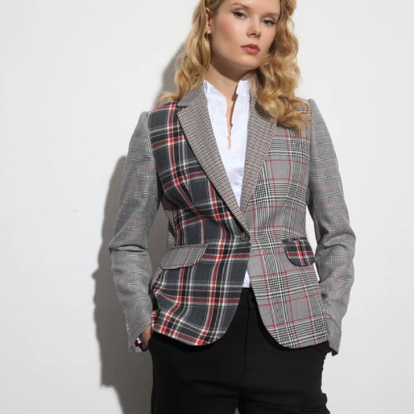 4種チェック テーラードジャケット レッド裏地付き ウール混 レディースインポートジャケット【スペインインポート TINTA(ティンタ)】 F2510020