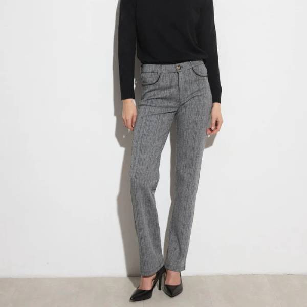 グレー ツウィード風×ラインストーン ストレッチ ストレートパンツ レディースインポートパンツ ボトムス【スペインインポート TINTA(ティンタ)】 F2510027