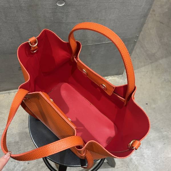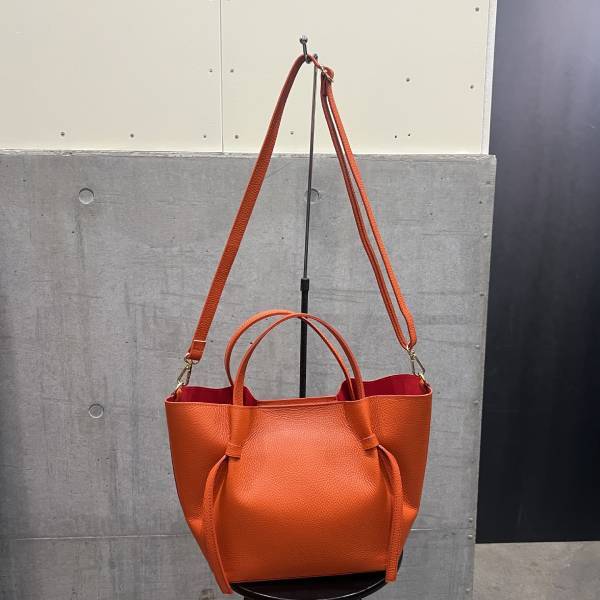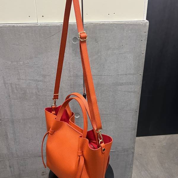 牛革 グレインレザー ポーチ、ショルダーストラップ付 横型バッグ 2Way仕様 オレンジ 鞄/カバン【イタリアインポート Z&Z】 F2510045