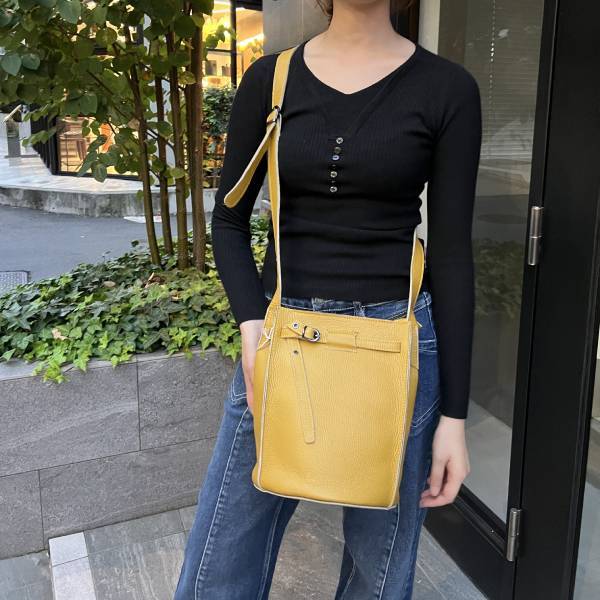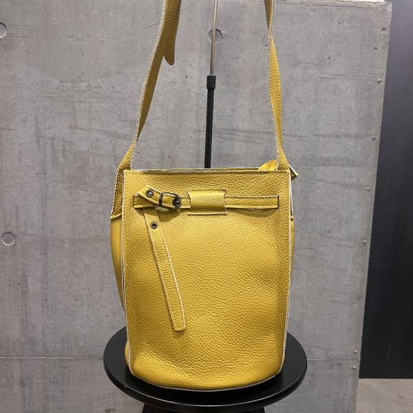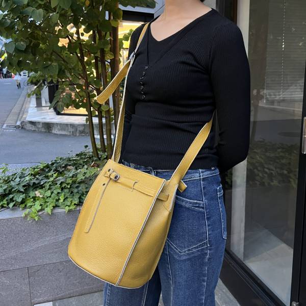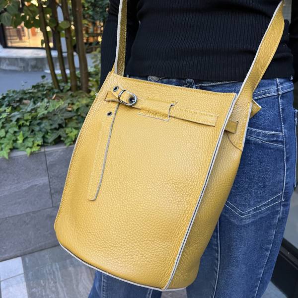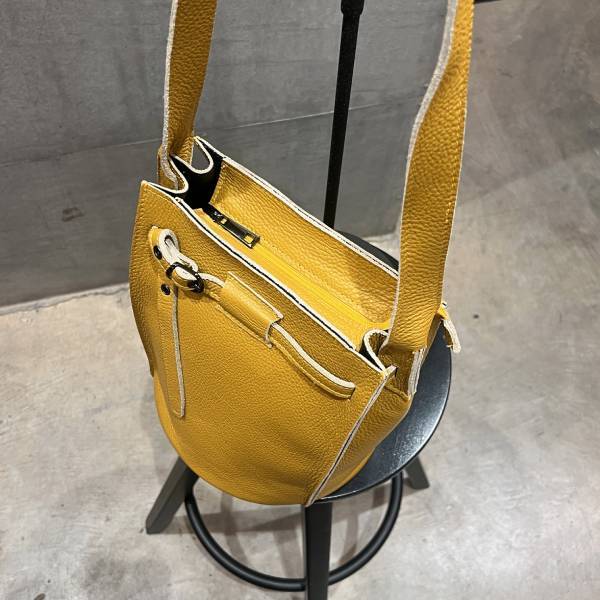 牛革 グレインレザー バケツ型ショルダーバッグ イエロー ユニセックス【イタリアインポート Z&Z】 F2510049