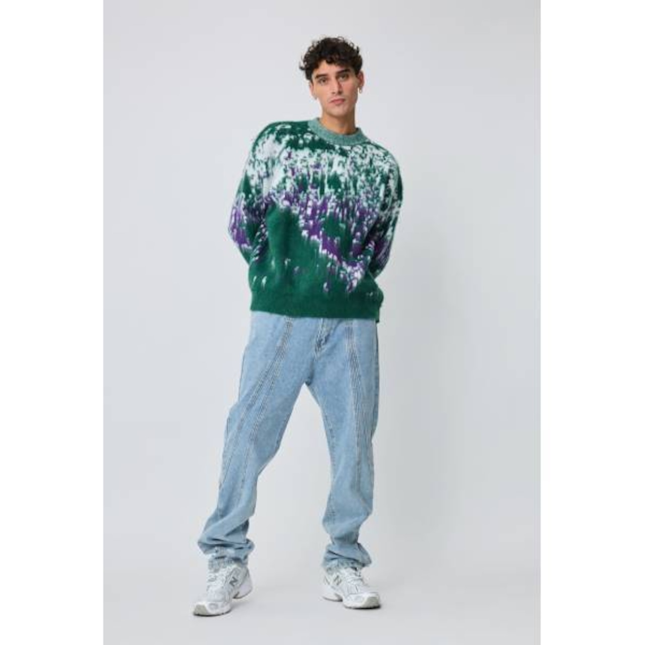 フランスのメンズインポートブランド”Frilivin(フリリヴィン)”より、深みのあるグリーンにホワイトとパープルのコントラストが綺麗な長袖ニットトップスをインポート。