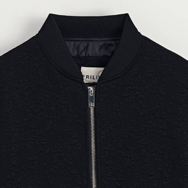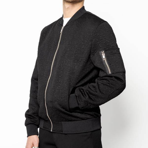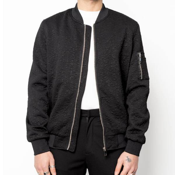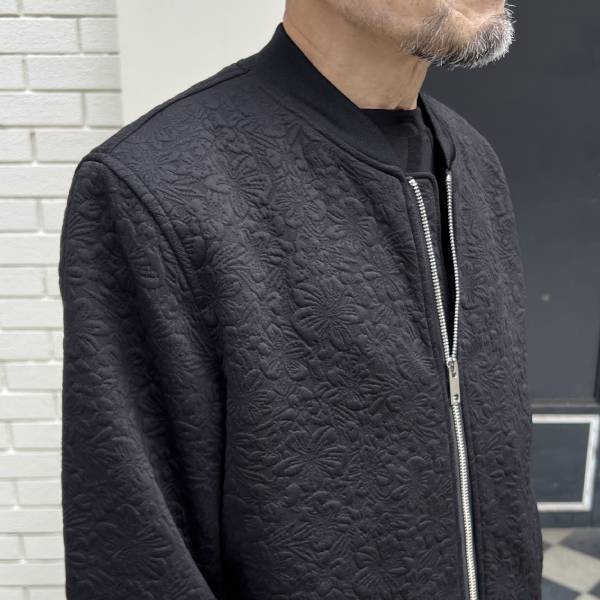 フラワー模様 ジャガード アシンメトリージップデザイン ジップブルゾン ブラック メンズアウター【フランスインポートFrilivin(フリリヴィン) 】 F2508034