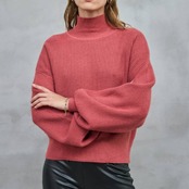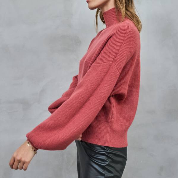 ラズベリー リブニットトップス オーバーサイズ ハイネック レディーストップス【フランスインポート”COPPERROSE”】 F2510095