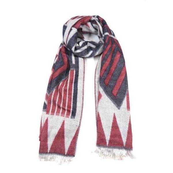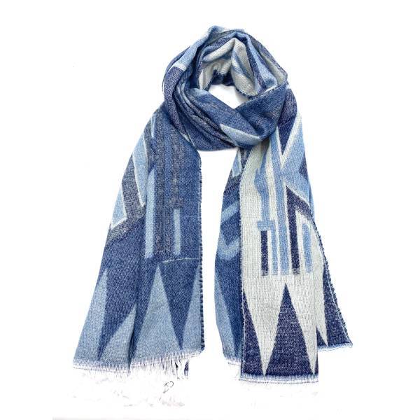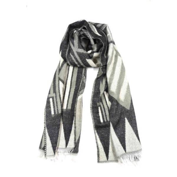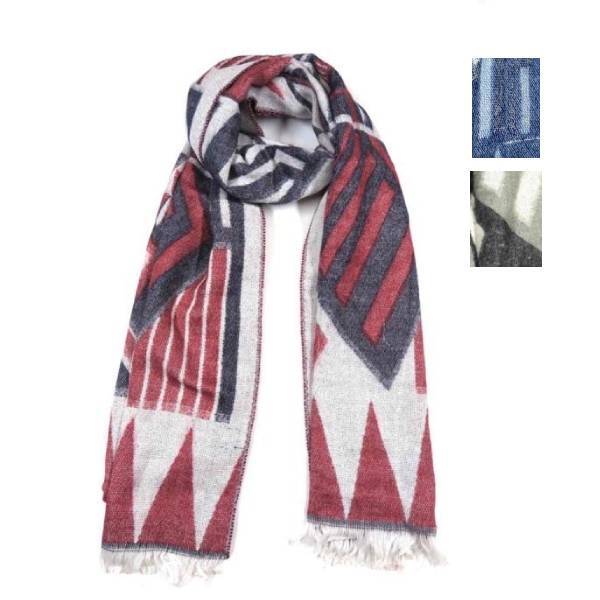 幾何学アート柄ストール 大判ストール ユニセックス 3色展開 ビスコースウール【フランス インポート LINETA】F2510055
