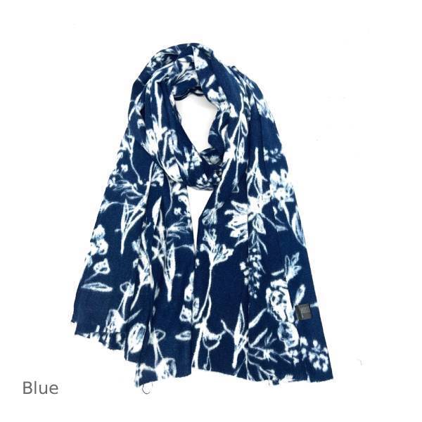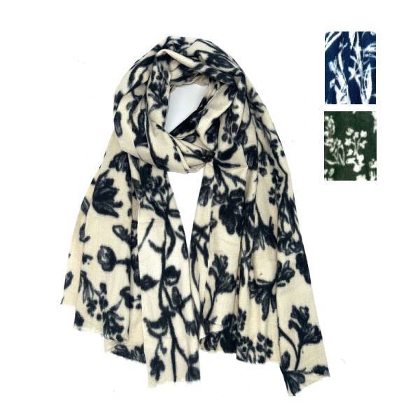 植物柄ストール 大判ストール ユニセックス 3色展開 ウールビスコース【フランス インポート LINETA】F2510056