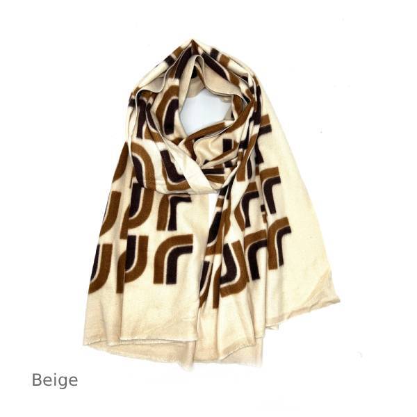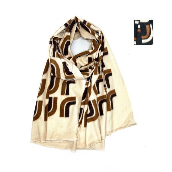 幾何学柄ストール 大判ストール ユニセックス 2色展開 ウールビスコース【フランス インポート LINETA】F2510057