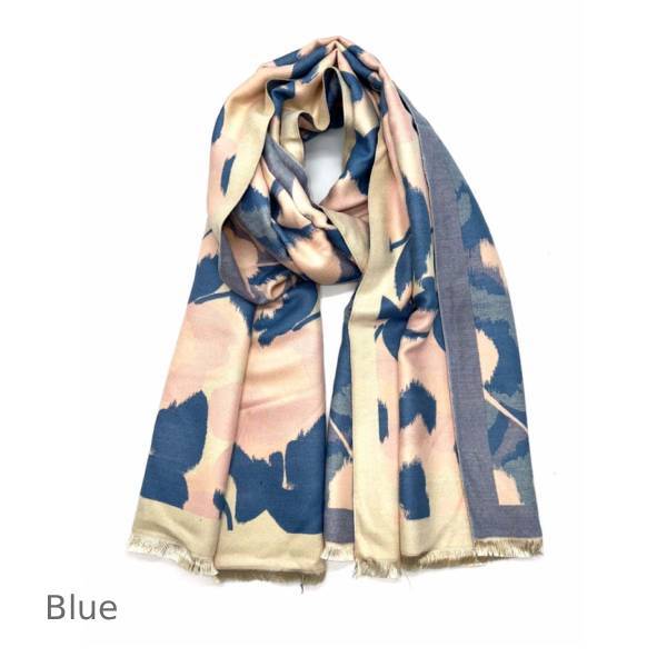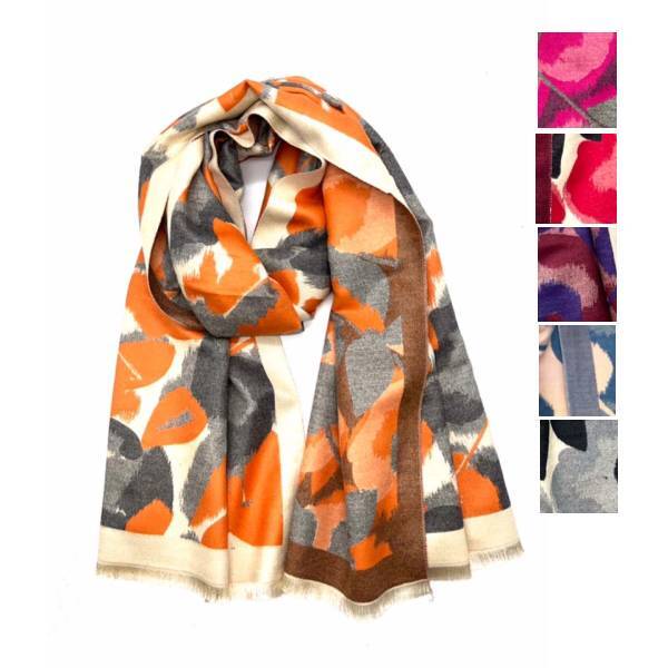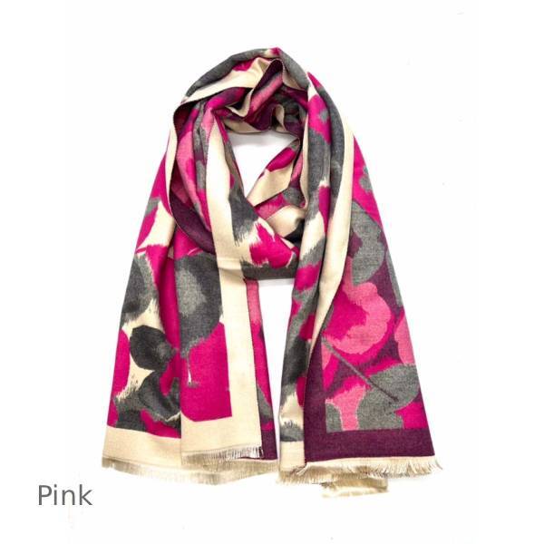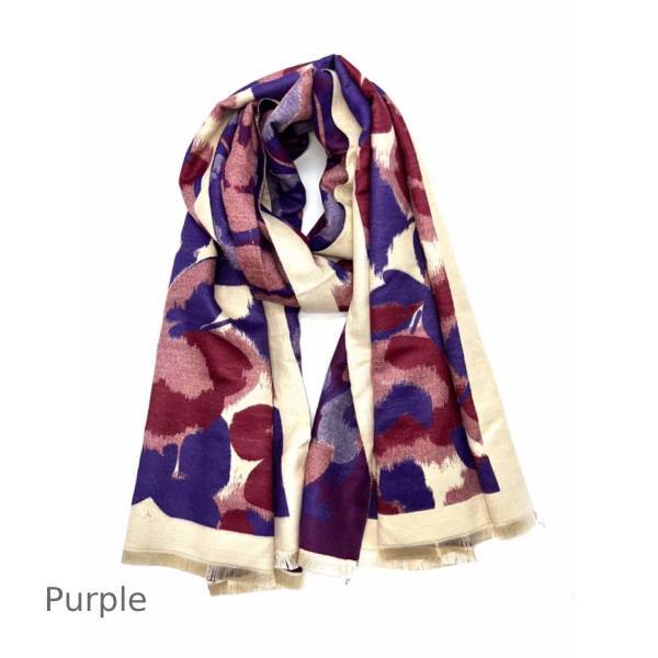 カシミアウール ダブルフェイス フラワー/花柄ストール 大判ストール ユニセックス 6色展開【フランス インポート LINETA】F2510060