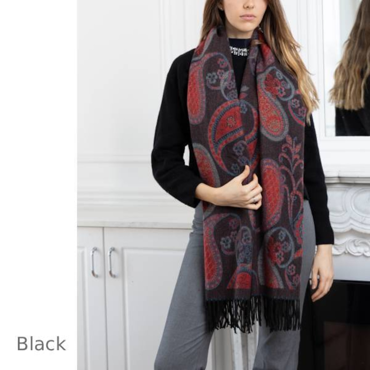 ペイズリー柄ストール 大判ストール ユニセックス 4色展開 ウールビスコース【フランス インポート LINETA】F2510063