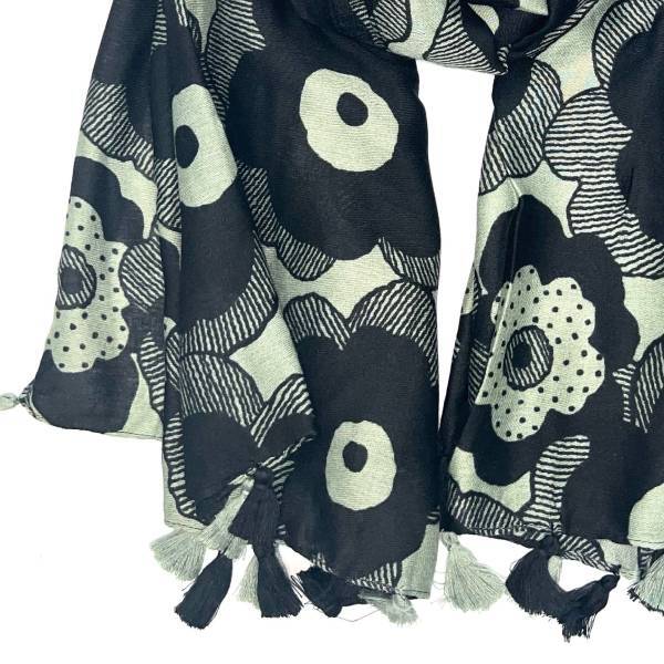 フラワー柄×フリンジストール 大判ストール ユニセックス ビスコースコットン 2色展開【フランス インポート LINETA】F2601044
