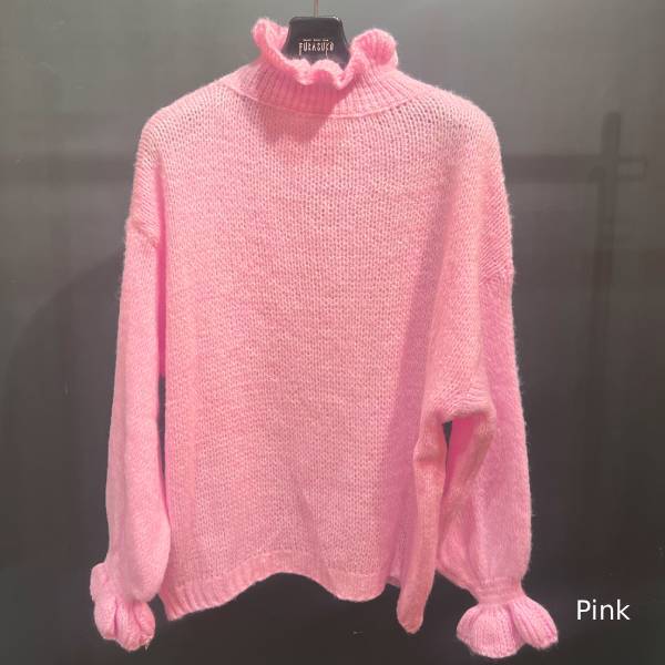 ローゲージニット フリル×パフスリーブ ハイネック長袖トップス オーバーサイズ ウール混 ニットトップス 6色展開 レディーストップス【フランスインポート ISSYMA】 F2511004