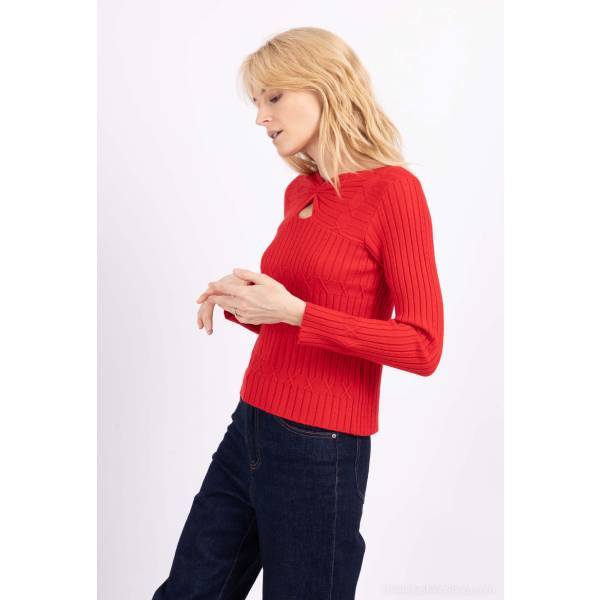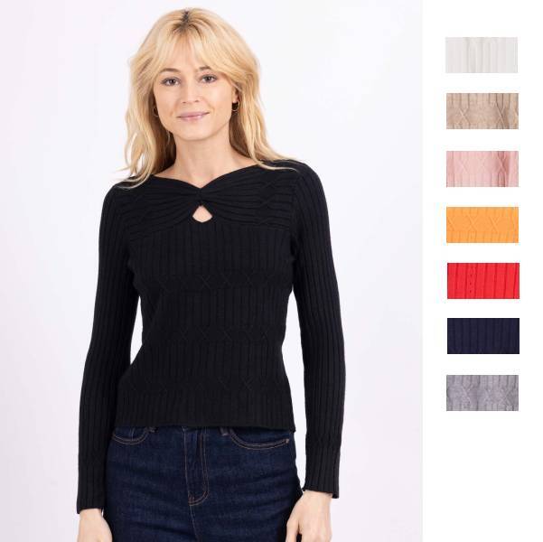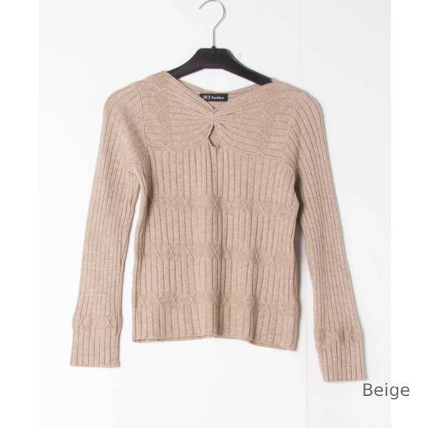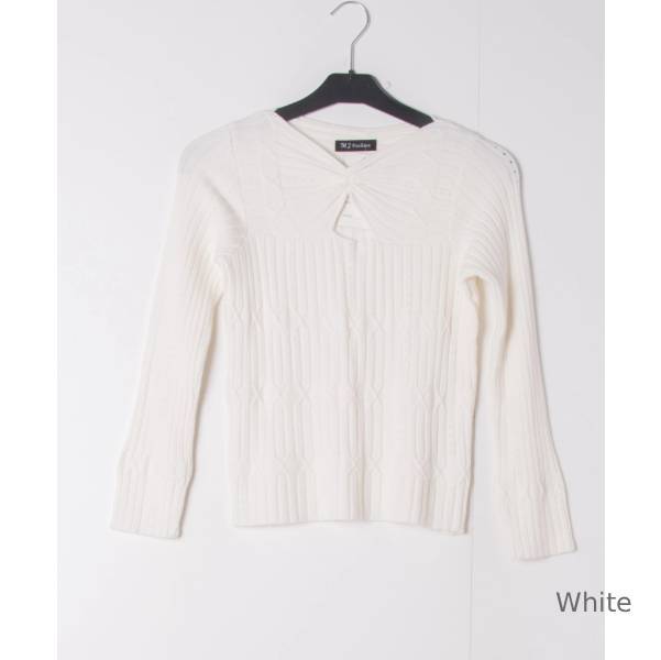 カシミア混 リボン風×胸元ホールデザインニットトップス 8色展開 リブニット セーター レディーストップス【フランスインポート MJ FASHION】 F2511013