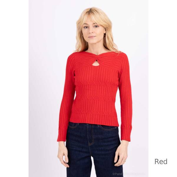 フランスインポートブランド”MJ FASHION”から、胸元のホールデザインが程よく抜け感があり、一枚でオシャレに決まるデザインニットトップスをインポート。