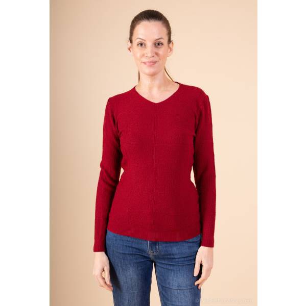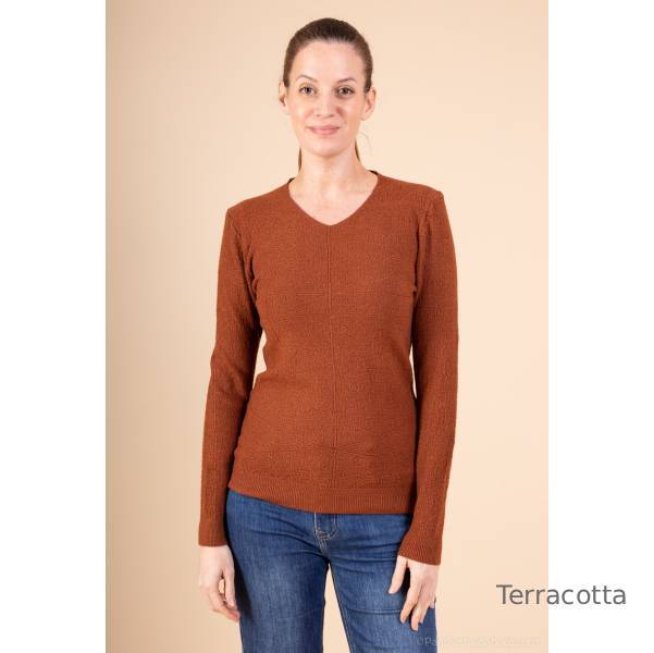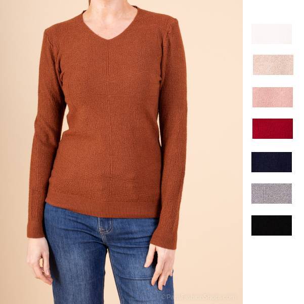 カシミア混 パイル風ジャガードニットトップス 8色展開 セーター Vネック シンプル プレーン 長袖トップス レディーストップス【フランスインポート MJ FASHION】 F2511015