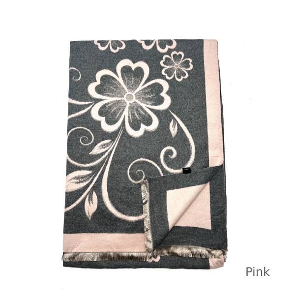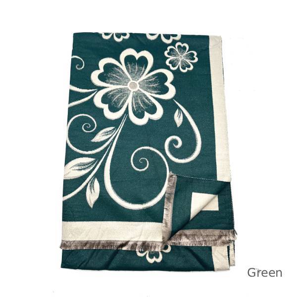 ダブルフェイス クローバー柄プリントストール 大判ストール ユニセックス 5色展開 ウールビスコース【フランス インポート LINETA】F2511031