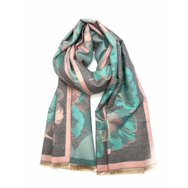 カシミアウール ダブルフェイス フラワー/花柄ストール 大判ストール ユニセックス【フランス インポート LINETA】F2511033