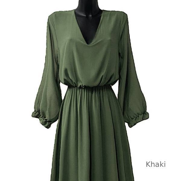 無地プレーン ロングワンピース 3色展開 Vネック オケージョンワンピース【フランス インポート Elle Style】F2510102