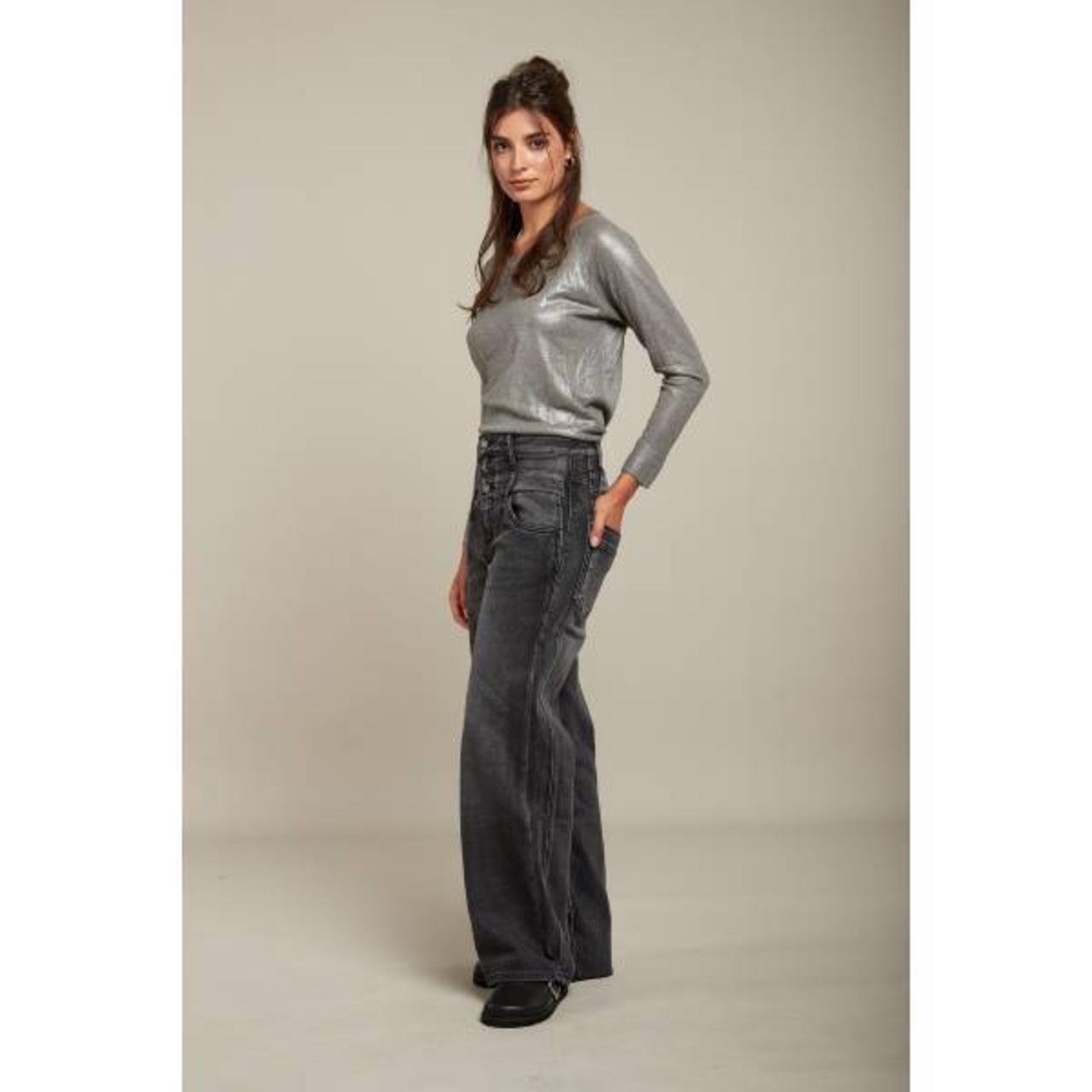 メンズライクでゆったりとした、バンクジーンズのようなシルエットがどんなトップスと合わせてもトレンド感をまとったスタイルが完成します。