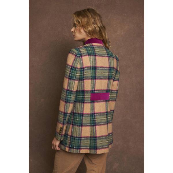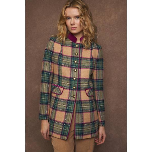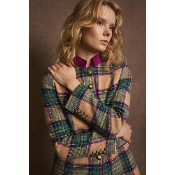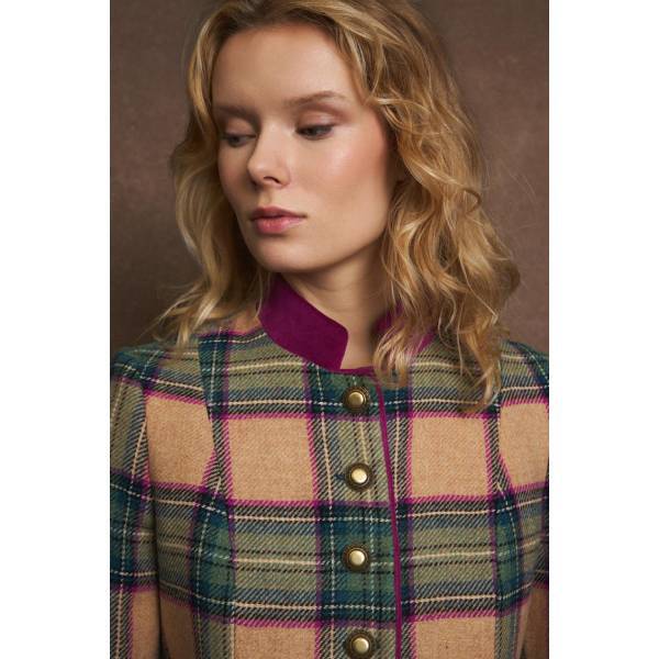 マドラスチェック×ベルベッド ハーフコート ウールコート レディースアウター【スペインインポート TINTA(ティンタ)】 F2512009