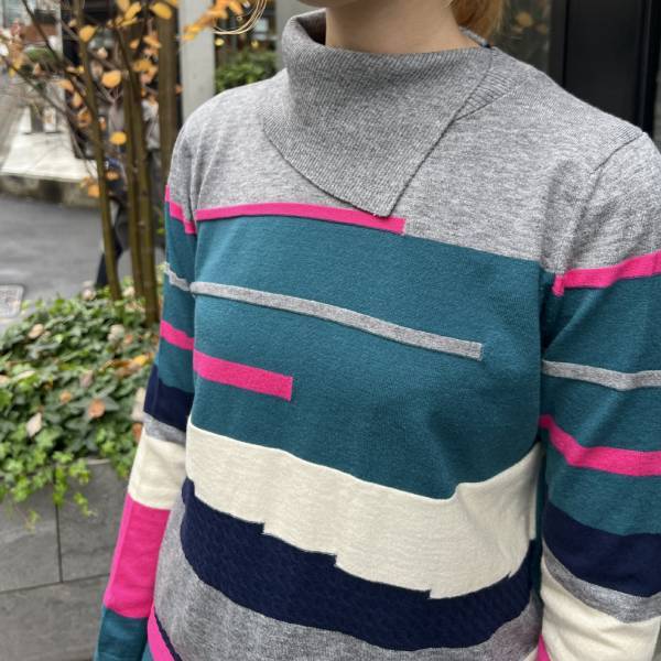 変形ネックデザイン アシンメトリー柄 長袖ニットトップス レディーストップス【スペインインポート TINTA(ティンタ)】 F2512012