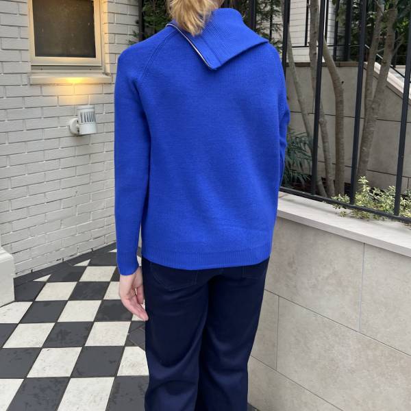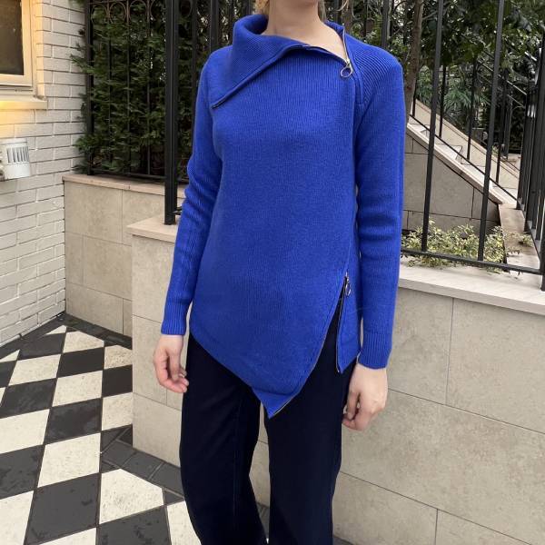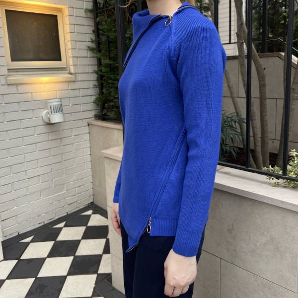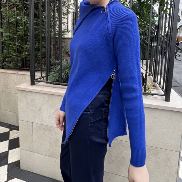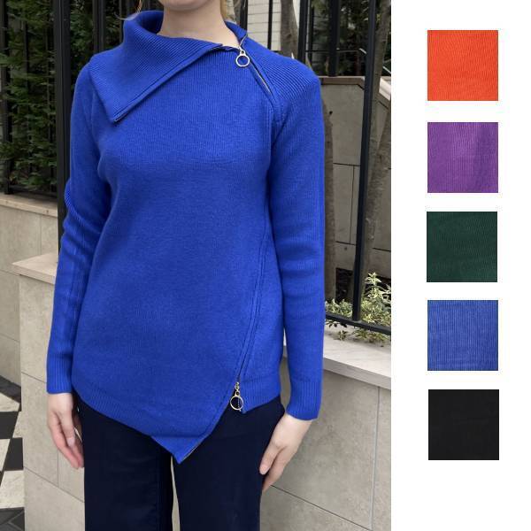 アシンメトリージップデザイン 長袖ニットトップス ハイゲージ レディーストップス【フランスインポート CMP55】 F2512019